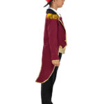 התחפושת כוללת ז'קט מעוצב עם חזייה, מכנסיים תואמים, חזית חולצה עם פפיון וכובע, שיוצרים מראה של כוכב הקרקס האמיץ.