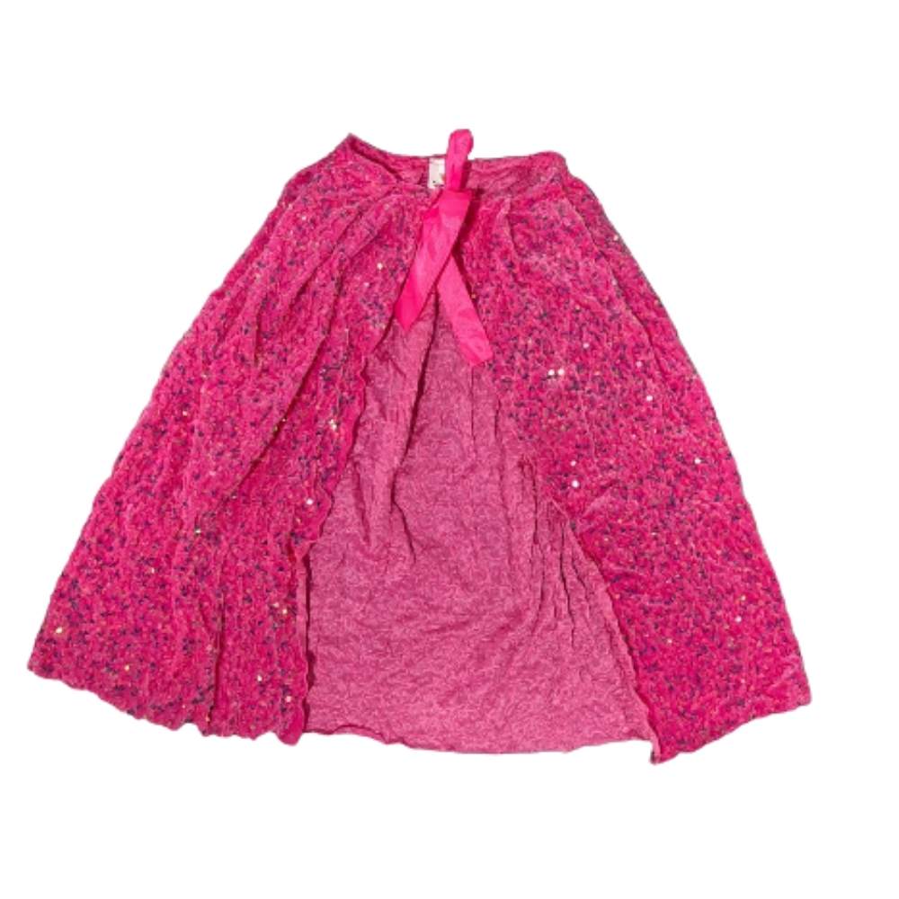 בד פייטים איכותי : הגלימה עשויה מבד עשיר משובץ פייטים ורודים ונוצצים שתופסים את האור מכל זווית.