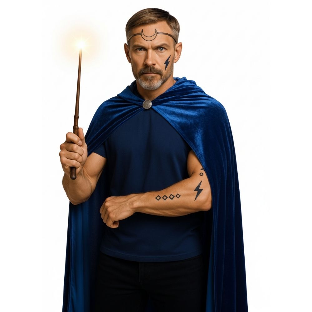 🔵 צבע כחול כהה: צבע ייחודי ונדיר לתחפושות קוסמים, המרמז על ידע קסום של מים, ירח או לילות.