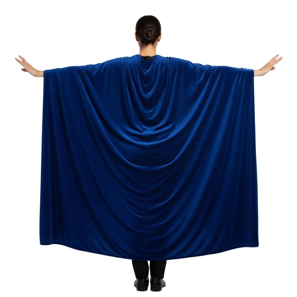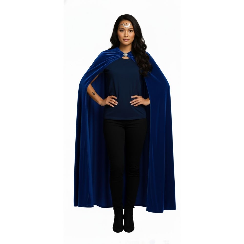 מראה אותנטי לנישה: קטיפה כחולה עמוקה מתאימה במיוחד לאסתטיקה גותית, רנסנס וקרנבל ונציאני, מה שהופך את הגלימה לאידיאלית לתחפושות "מלכות הצללים" או "אצולה אלפית" כהה.,