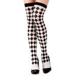 גרבי ברך איכותיות בדוגמת משבצות שחור-לבן, בדיוק מה שצריך כדי להשלים כל מראה דרמטי, אלגנטי או ליצני.