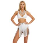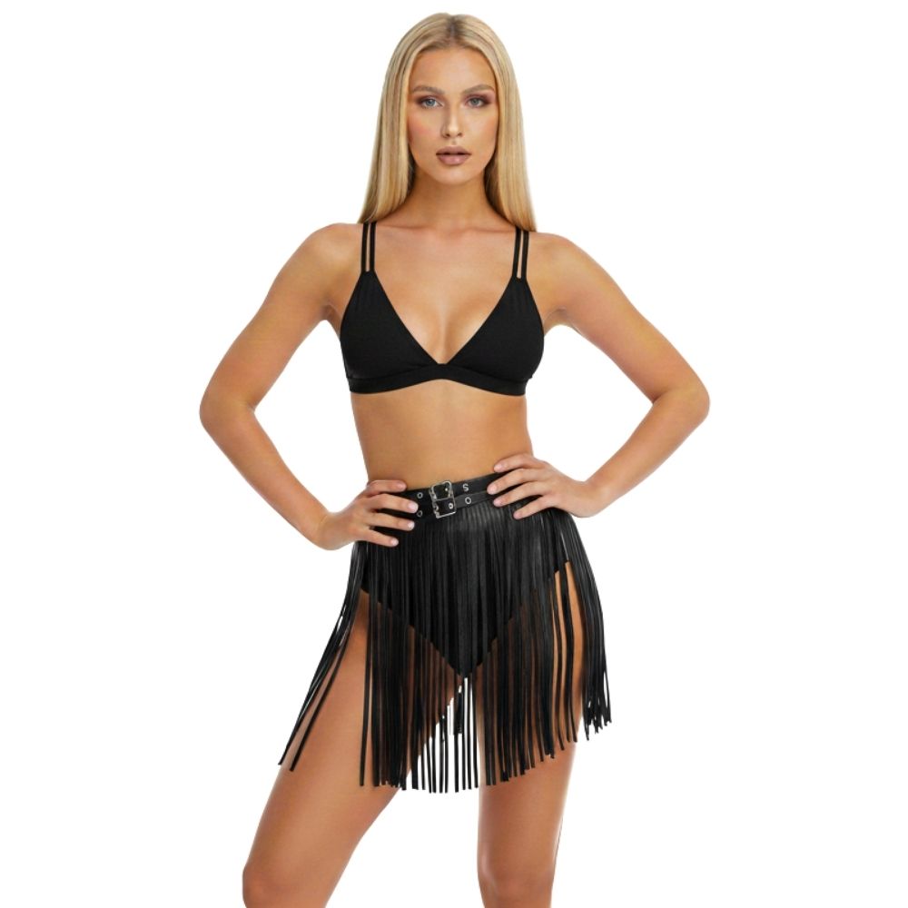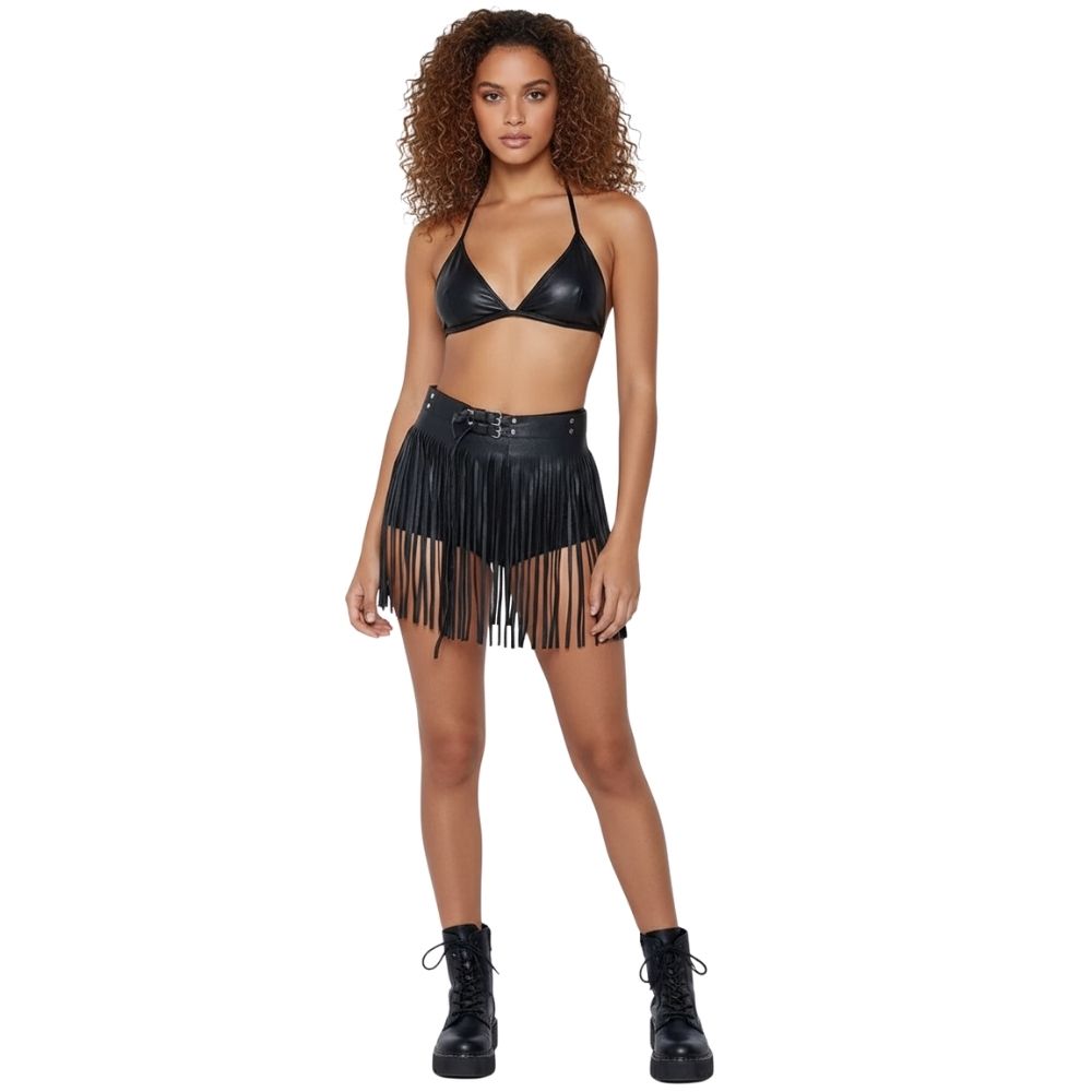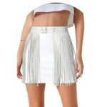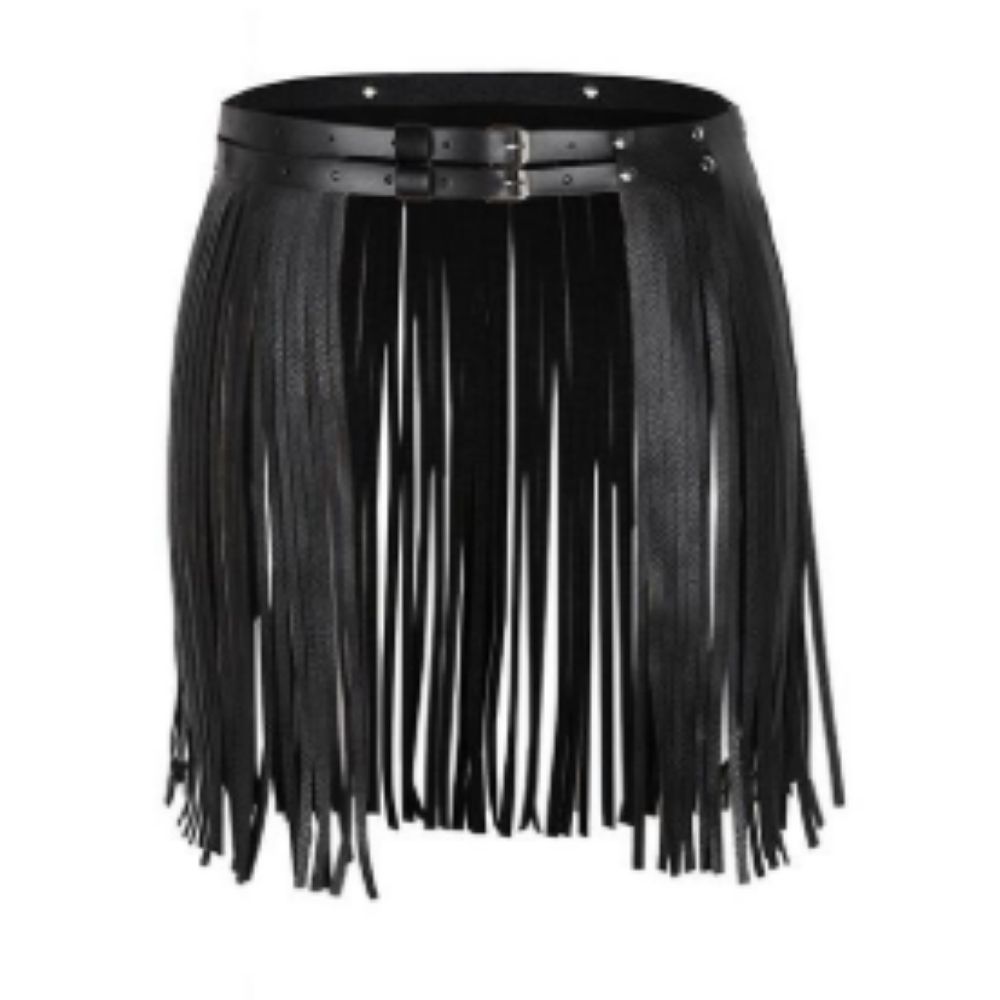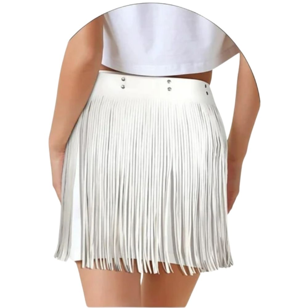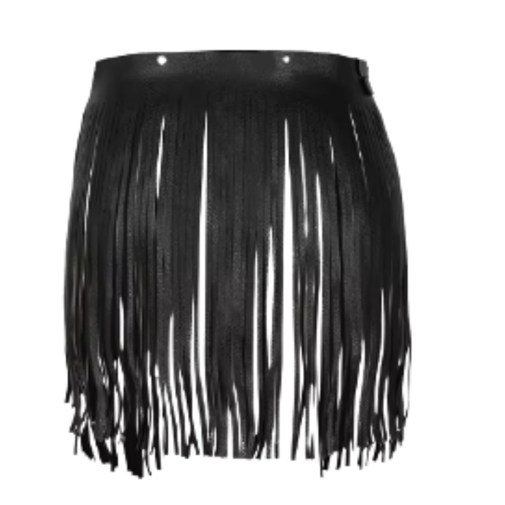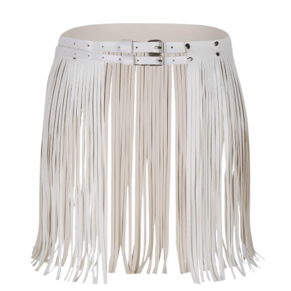 חגורת מותן פרנזים דמוי עור : שחור / לבן ✨