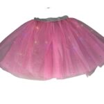 חצאית טוטו ורודה עם נצנצים בשילוב חגרוה כסף ותאורה 40 ס"מ