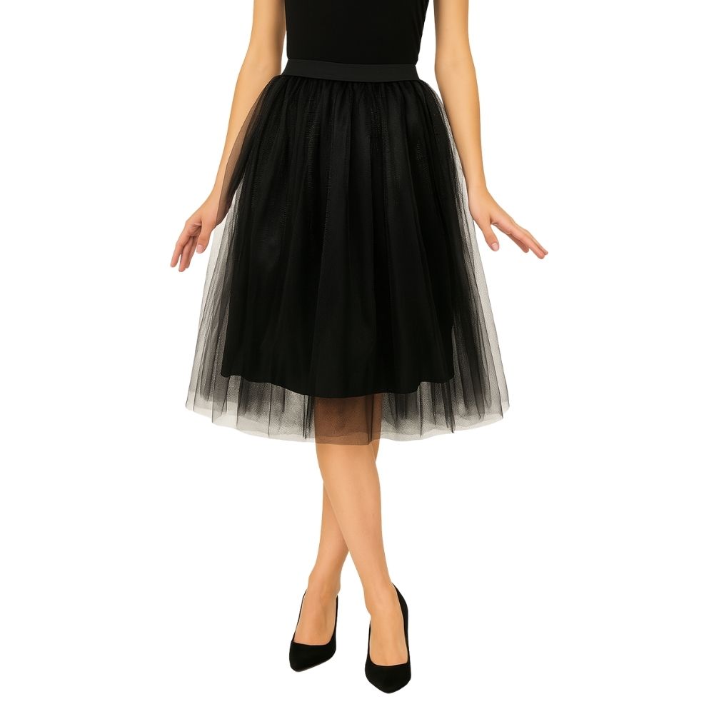 חצאית טוטו קלאסית ומרשימה בצבע שחור עמוק, שמוסיפה נפח, תנועה וסטייל לכל הופעה.