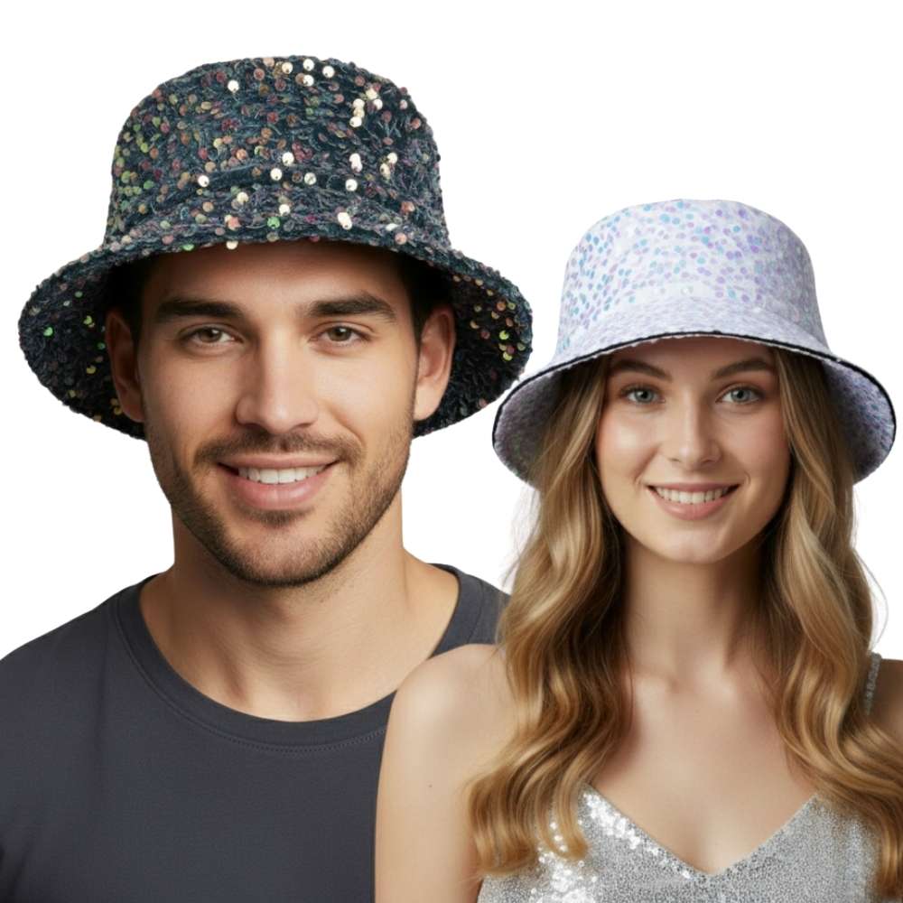 🌟 כובע באקט פסטיבלים נוצץ | כובע דיסקו עם פאייטים, יוניסקס