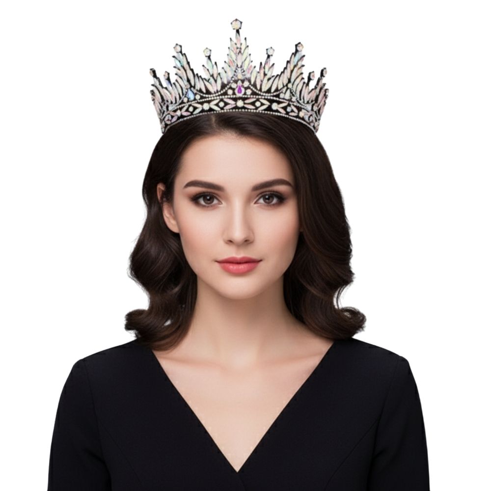 כתר נוצץ בעיצוב פנטזיה קסום, עם שיבוצי אבני קריסטל המשנות גוון לפי התאורה.