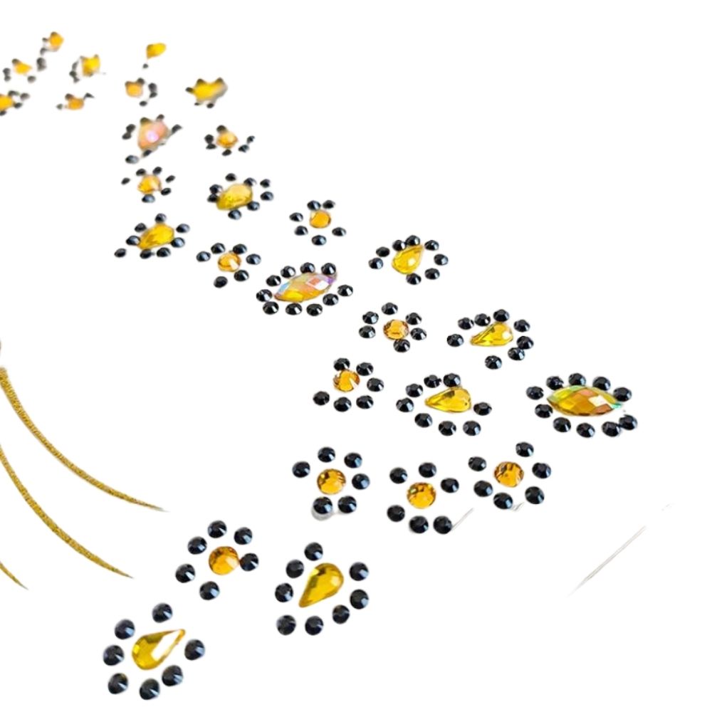 סט אבני פנים נוצצות בעיצוב נמר פראי וזוהר – מושלם לפורים, מסיבות ופסטיבלים.