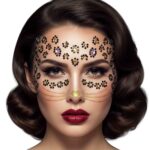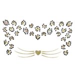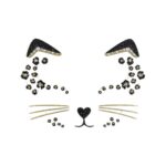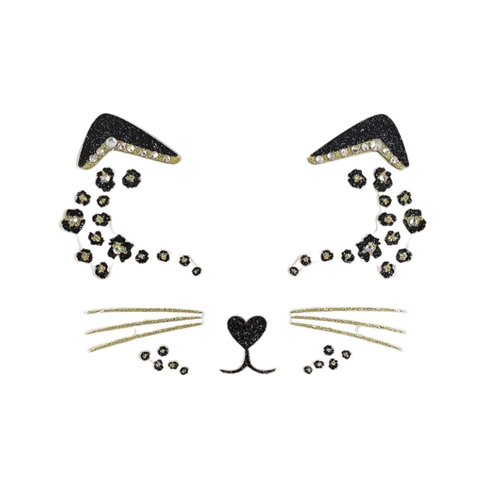 מדבקות פנים יוקרתיות בגווני שחור וזהב עם נצנוץ מרהיב, להשלמת מראה נמר אלגנטי ומושך.