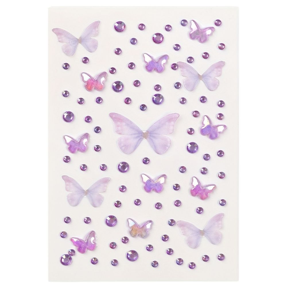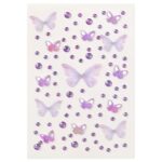 סט מדבקות מהמם עם פרפרים סגולים בגדלים שונים ויהלומים מנצנצים.