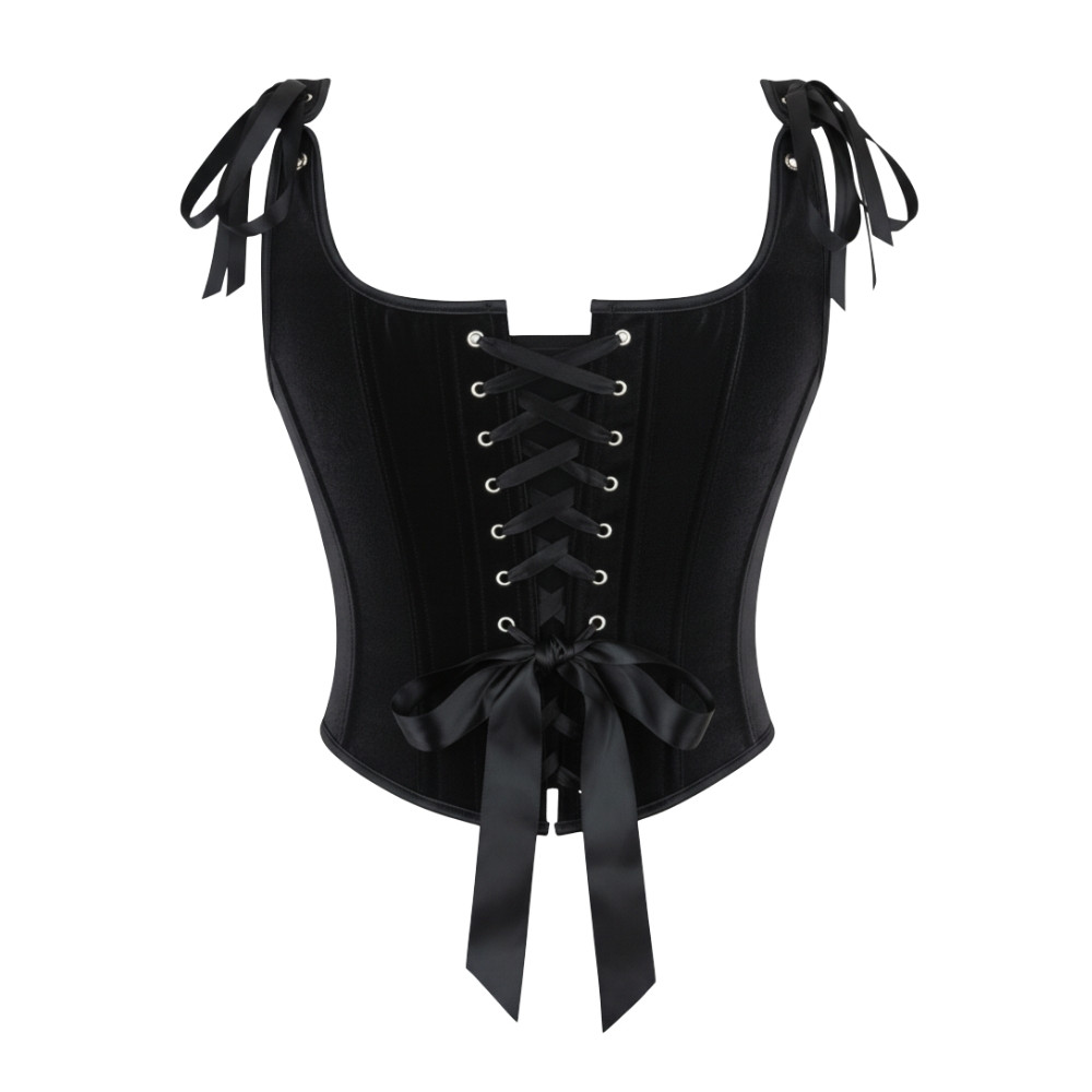 עיצוב ויקטוריאני קלאסי בשילוב קשירות קדמיות, רצועות קשירה מעוצבות ומבנה מחמיא שמדגיש את קו המותן והחזה בצורה אלגנטית ומדויקת.