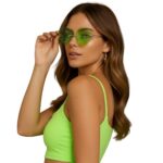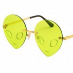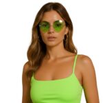 משקפי שמש ייחודיות בעיצוב עיני חייזר, בגוון ירוק שקוף ומבריק, שמעניק מראה מסתורי, שובב ונוצץ.