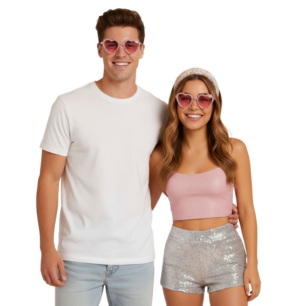 העדשות הוורודות מעניקות טאץ' רך ורומנטי, בעוד המסגרת המנצנצת שובה כל מבט – מושלם לפורים, מסיבות, פסטיבלים וצילומי תוכן צבעוניים.