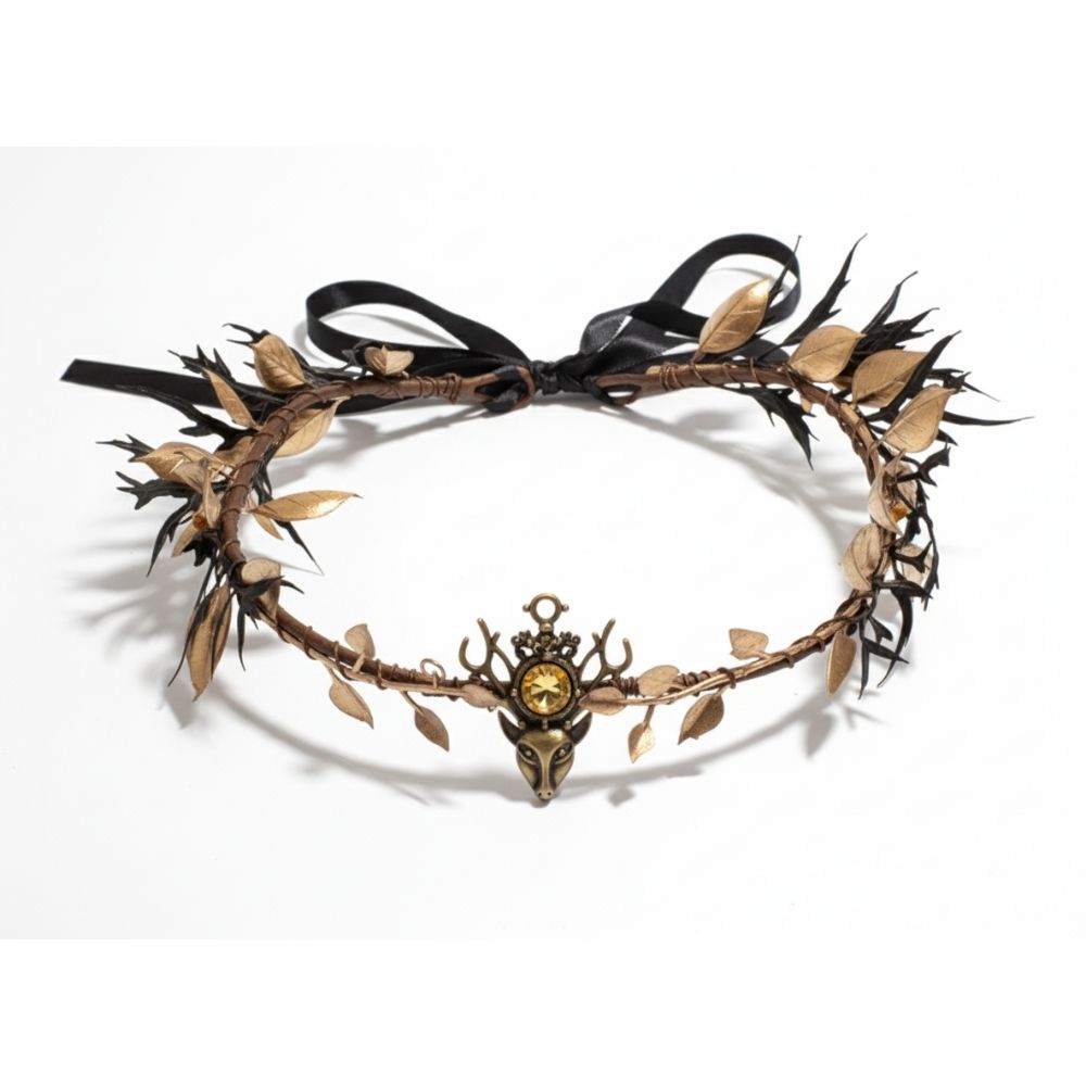 עם שילוב מדויק של עלים מטאליים בגווני זהב ושחור, ואלמנט אמצעי בצורת צבי מלכותי, הוא מעניק מראה דרמטי וייחודי – בדיוק כמו מלכה אמיתית מהאגדות.