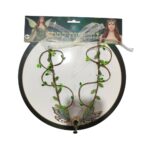 ענפי גפן גמישים עם עלים ירוקים קטנים – משתלבים בהרמוניה מושלמת עם מבנה הראש.