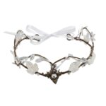 נזר עלים לבנים עם תליון אבן נוצצת במרכז הוא תכשיט שיער מלא קסם, שמשלב בין טוהר, רכות ונוכחות זוהרת.