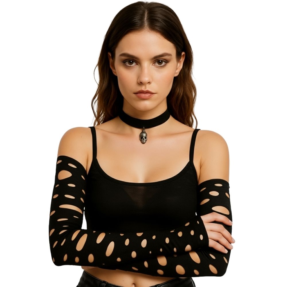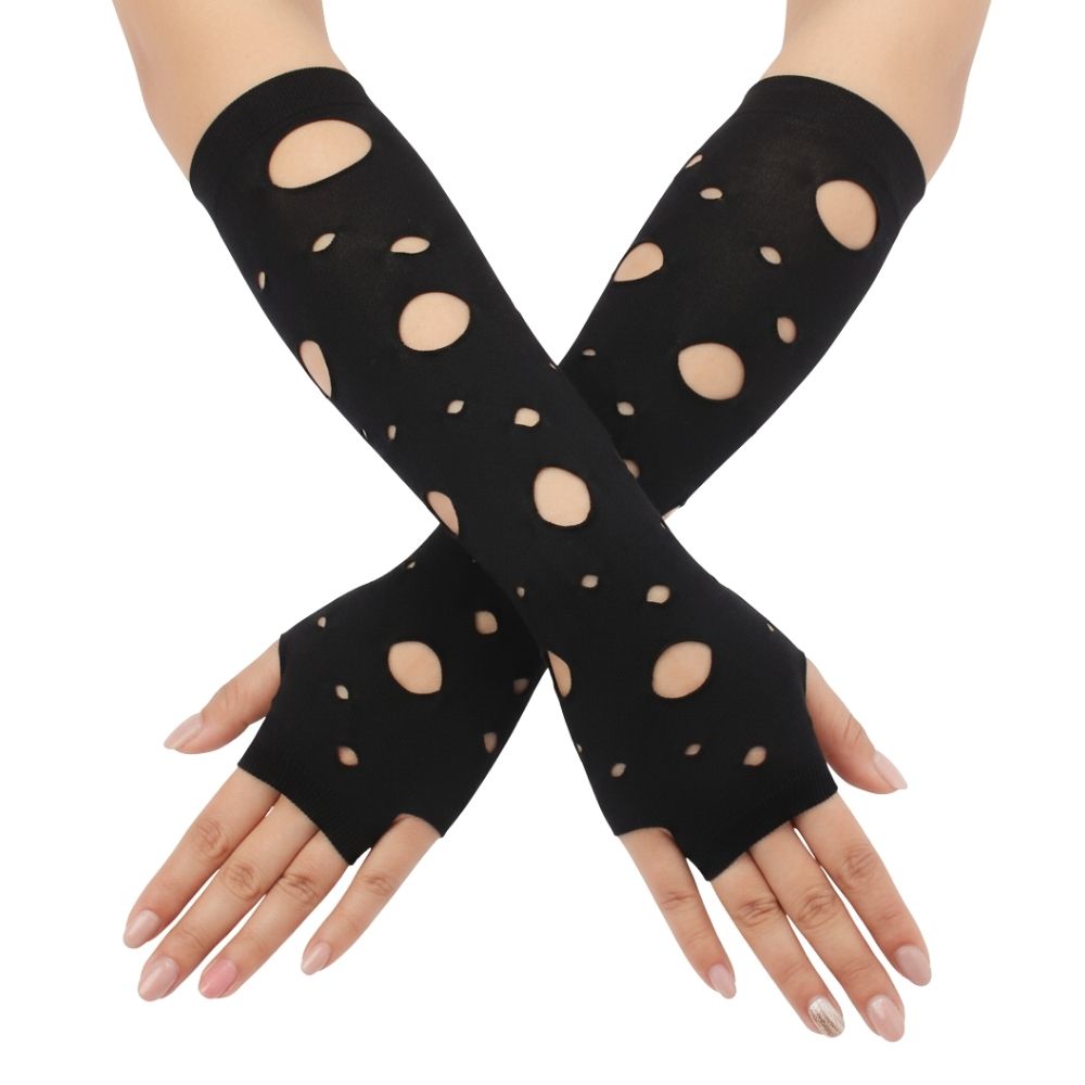 ✔️ זוג כפפות קרעים מעוצבות בסגנון פאנק־גותי