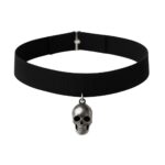 ✔️ צווארון קטיפה שחור עם תליון גולגולת מתכת