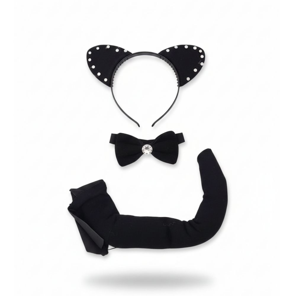 סט חתול שחור אלגנטי ומלא נוכחות, בעיצוב פרימיום מיוחד שמתאים לכל גיל ומעניק מראה חתולי מדויק, מסתורי וזוהר. מושלם לפורים, מסיבות, הפקות וצילומים.