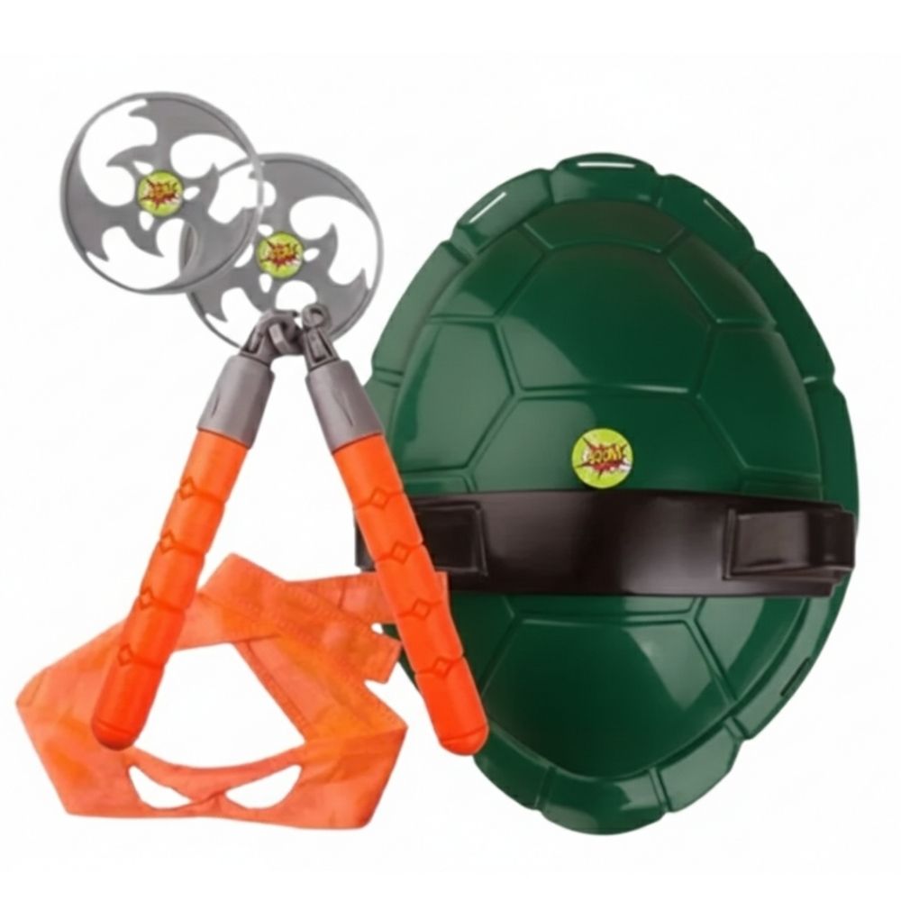 🟧 דגם כתום – כולל נונצ’קו קלאסי, 2 כוכבי נינג'ה, שריון ומסכת עיניים כתומה