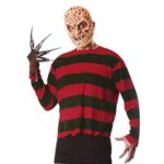 סט תחפושת פרדי קרוגר למבוגרים בהשראת דמות האימה האייקונית מסדרת סיוט ברחוב אלם, מושלם לפורים, מסיבות תחפושות ואירועי האלווין.