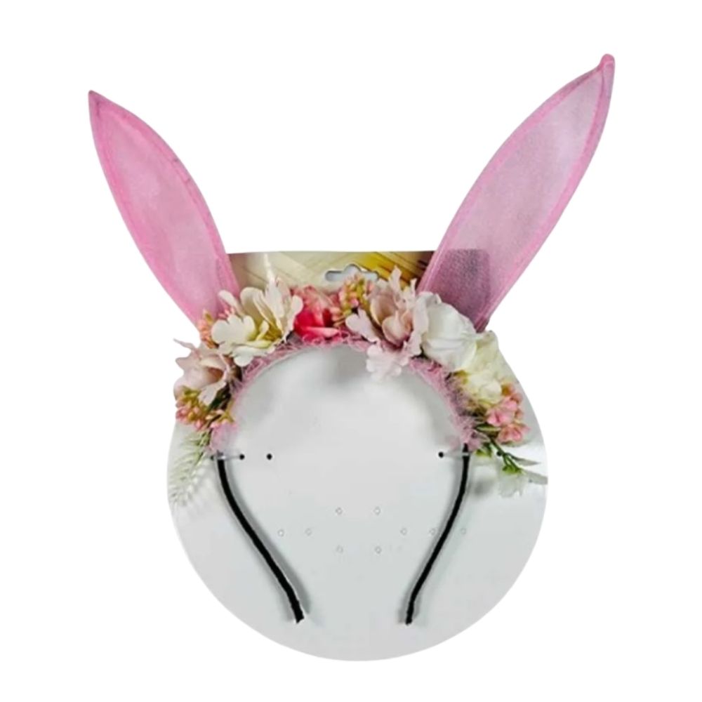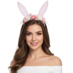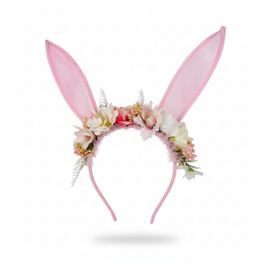 קשת אוזני ארנבת עדינה ומלאת קסם בעיצוב פרחים יפיפיים, מושלמת להשלמת כל תחפושת – ארנבת, פיה, אלפית, נערת אביב ועוד.