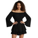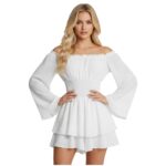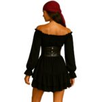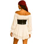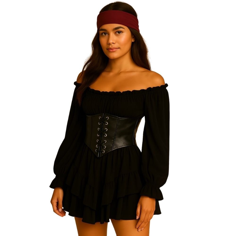 שמלת פיראטית נשית ומהודרת בגזרה מחמיאה, זמינה בצבע שחור קלאסי או לבן אלגנטי, בשילוב מחוך מחטב בעיצוב יוקרתי.