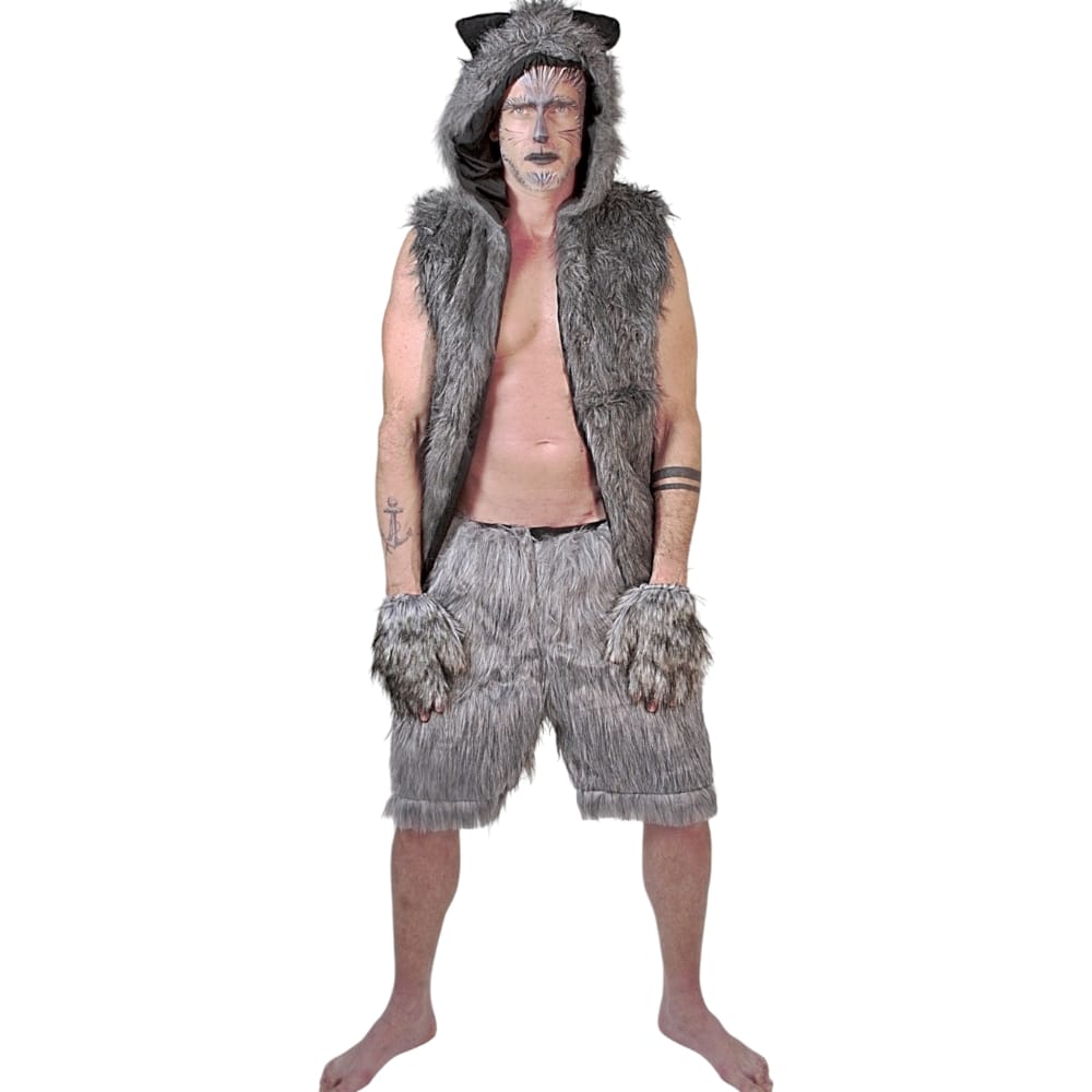 🐺 וסט זאב מפואר עם כובע ואוזניים – פרווה יוקרתית בעיצוב פראי!