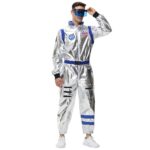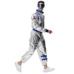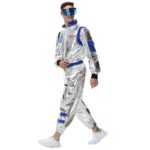 תחפושת אסטרונאוט ייחודית ומרשימה בעיצוב עתידני כסוף עם עיטורי כחול.
