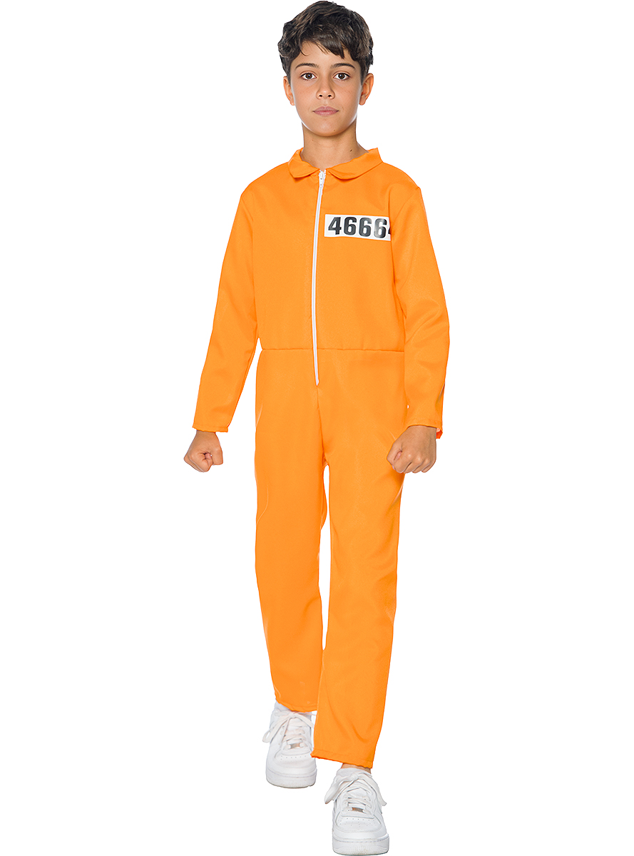 התחפושת כוללת אוברול מעוצב בסגנון אסיר, המעניק מראה ייחודי ואותנטי.