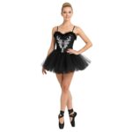 היכנסי לעולם של אלגנטיות מסתורית עם תחפושת בלרינה “ברבור שחור” המעוצבת בפרטים מדויקים ומראה דרמטי עוצר נשימה.