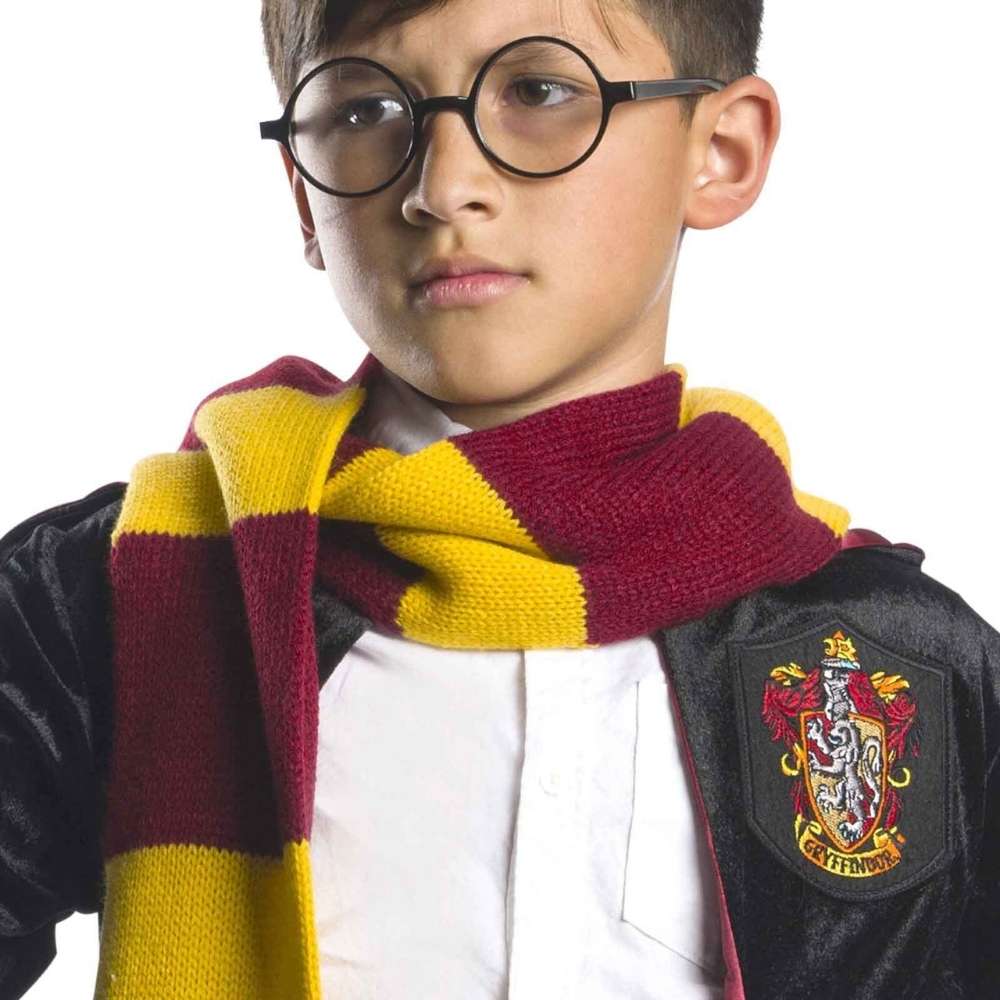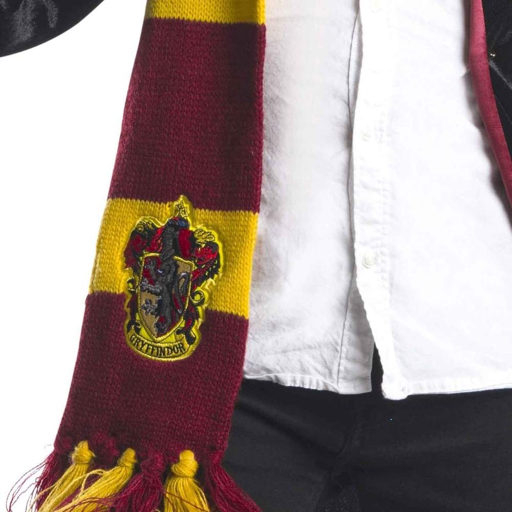 גלימה שחורה עם סמל בית גריפינדור וצעיף בצבעי הבית יוצרים מראה אייקוני של הקוסם הצעיר והאהוב.