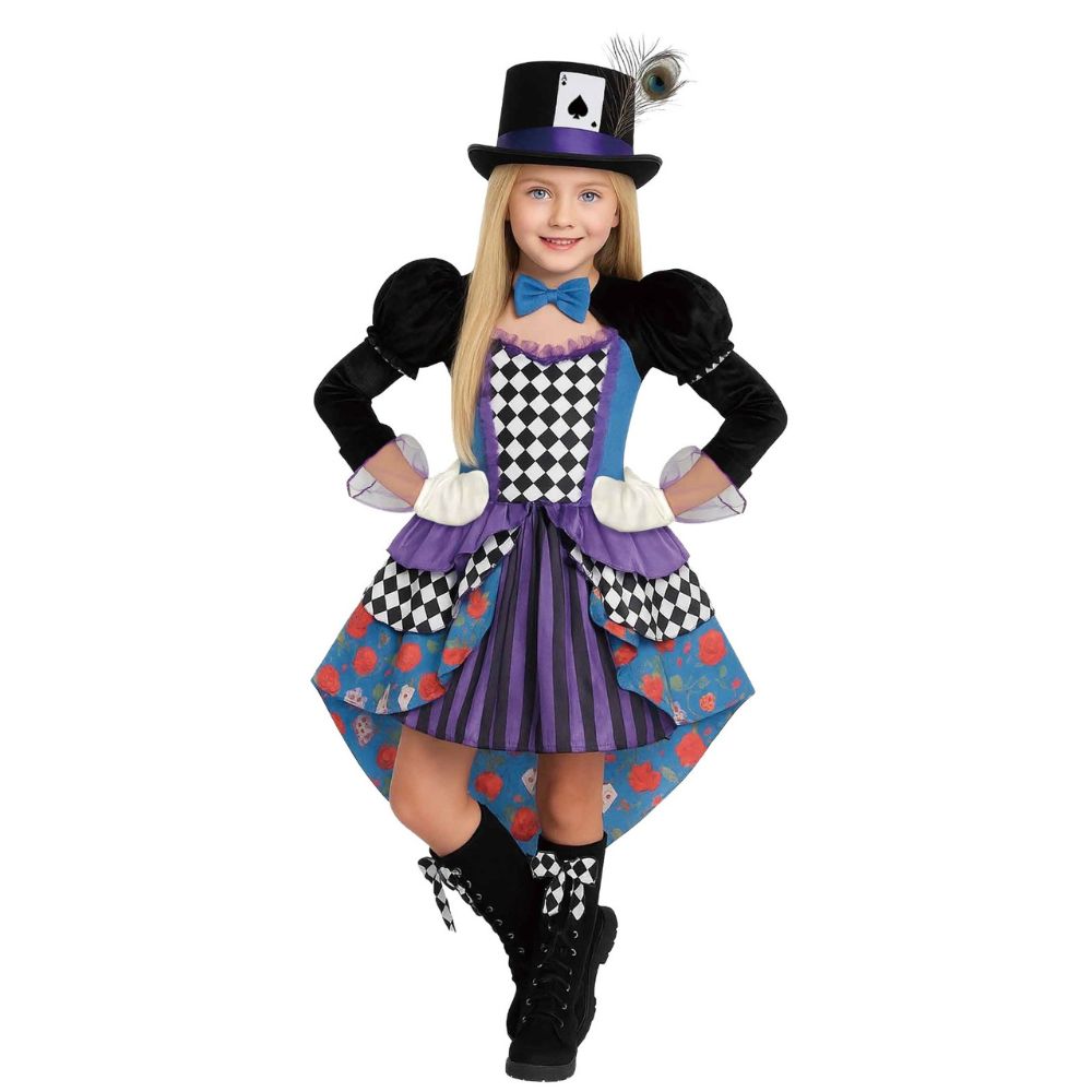תחפושת הכובען המשוגע לילדות 🎩: גיל 8-13 ♠️