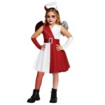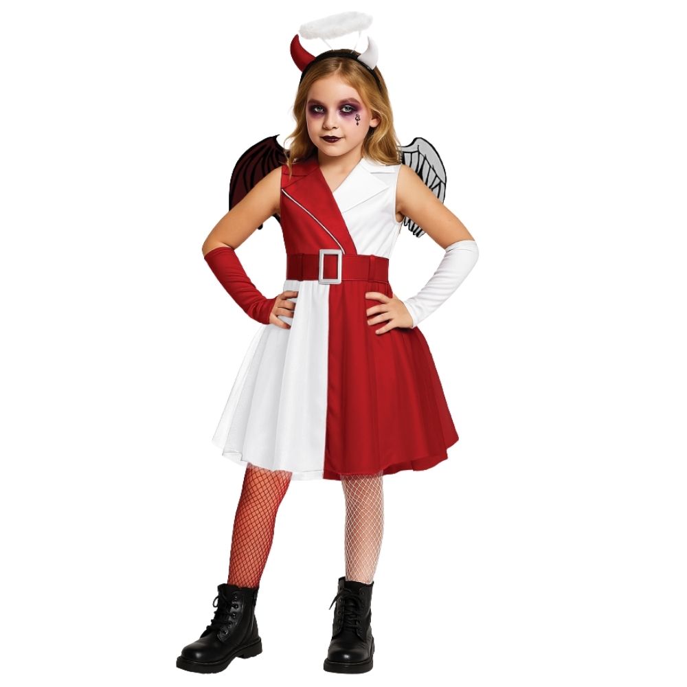 שמלה אדומה ולבנה עם חגורה, כנפיים דו צדדיות וקשת קרניים והילה יוצרים מראה דרמטי, בולט ומלא סטייל שילדות פשוט מתאהבות בו.