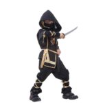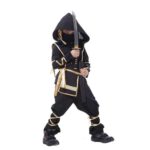 התחפושת נינג'ה כוללת חולצה עם כובע גדול, מכנס, חגורה וחוטי זהב לקשירה, מה שמעניק לילד המון כיף ומסתוריות .