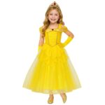 תחפושת נסיכה צהובה מרהיבה בעיצוב קלאסי ונסיכותי.