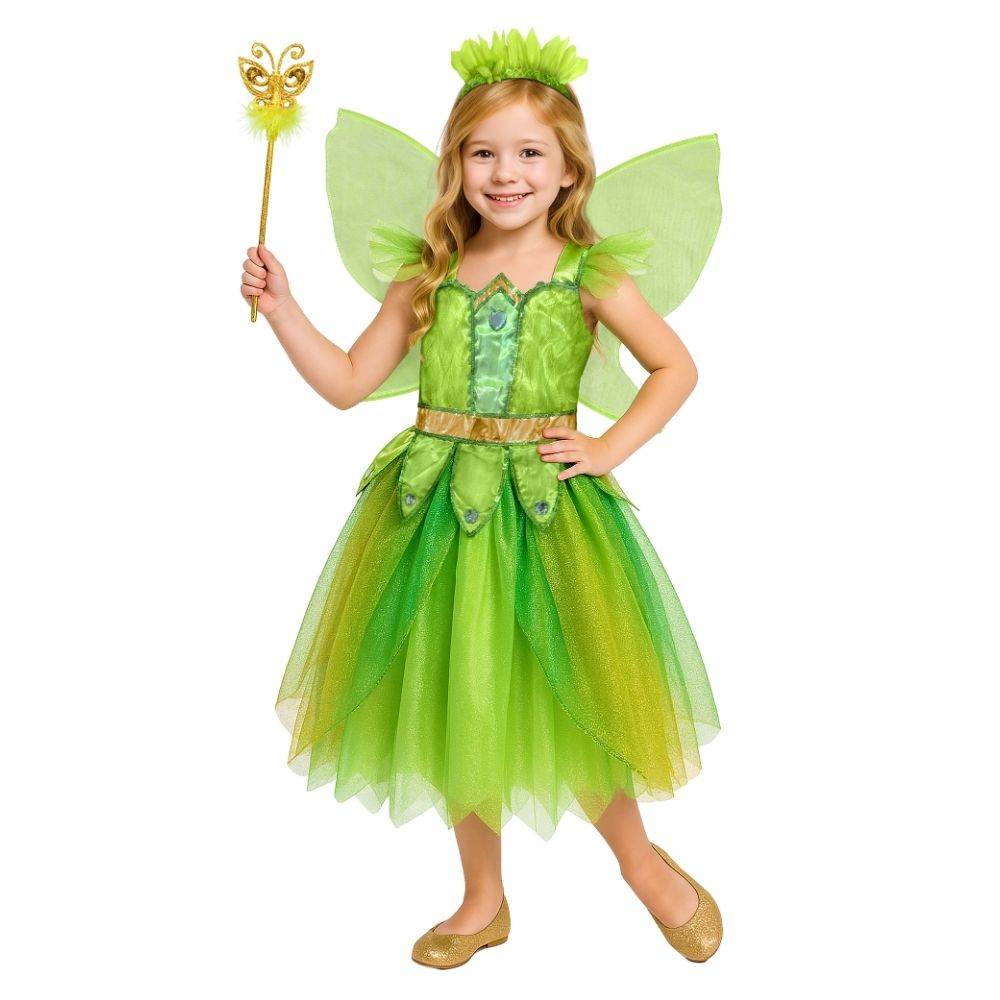 תחפושת פייה ירוקה לילדות במראה מהפנט ומנצנץ ✨