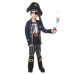 תחפושת פיראט עצמות כוללת חולצת פיראט עם הדפס עצמות מפוארת , ג'קט פיראט מפואר ,חגורת פיראט  ,מכנס פיראט עם כיסוי נעלים ובנוסף כובע פיראט  מה שמעניק לילד המון כיף .