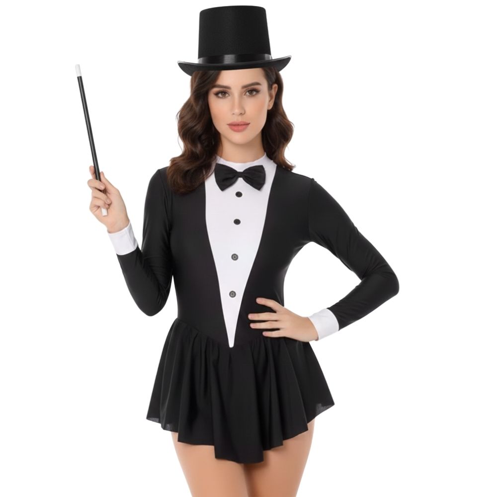 עיצוב שחור לבן קלאסי עם לוק קוסם מהודק שיגרום לכל תרגיל קסם להיראות מושלם. מתאימה לפורים, מסיבות ואירועי נושא.