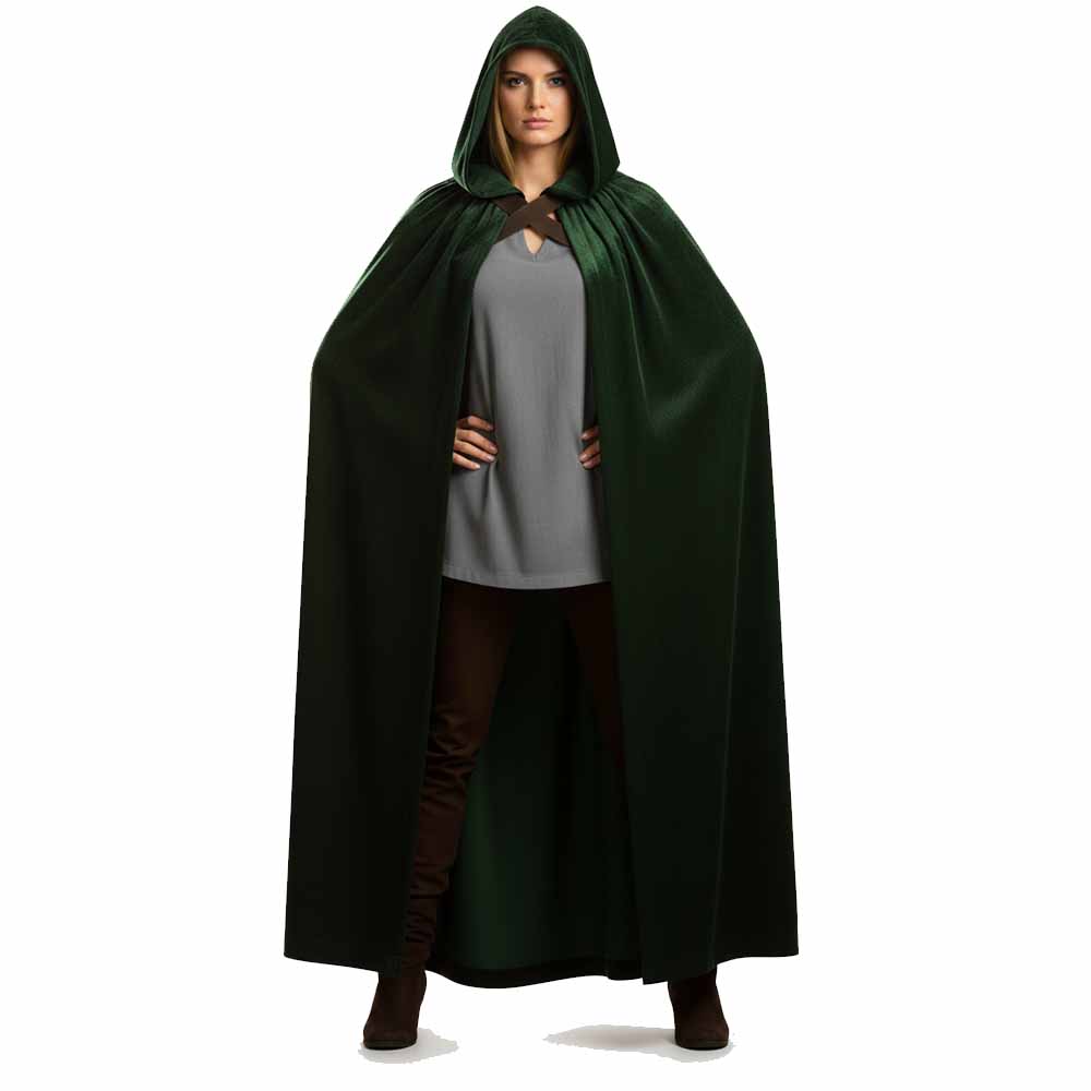 מראה אותנטי לנישה: קטיפה ירוקה עמוקה מתאימה במיוחד לאסתטיקה גותית, רנסנס וקרנבל ונציאני, מה שהופך את הגלימה לאידיאלית לתחפושות "מלכות הצללים" או "אצולה אלפית" כהה.,